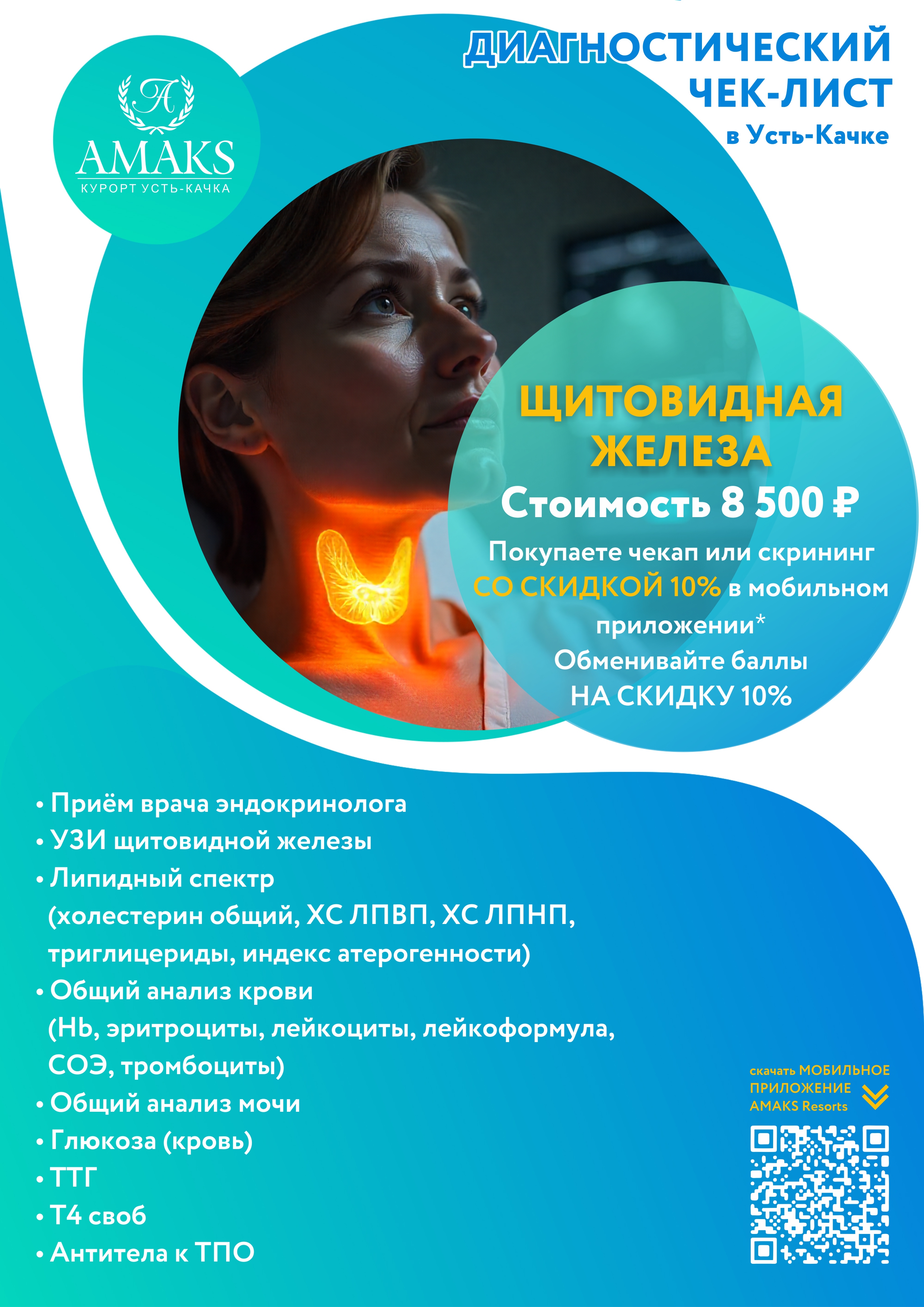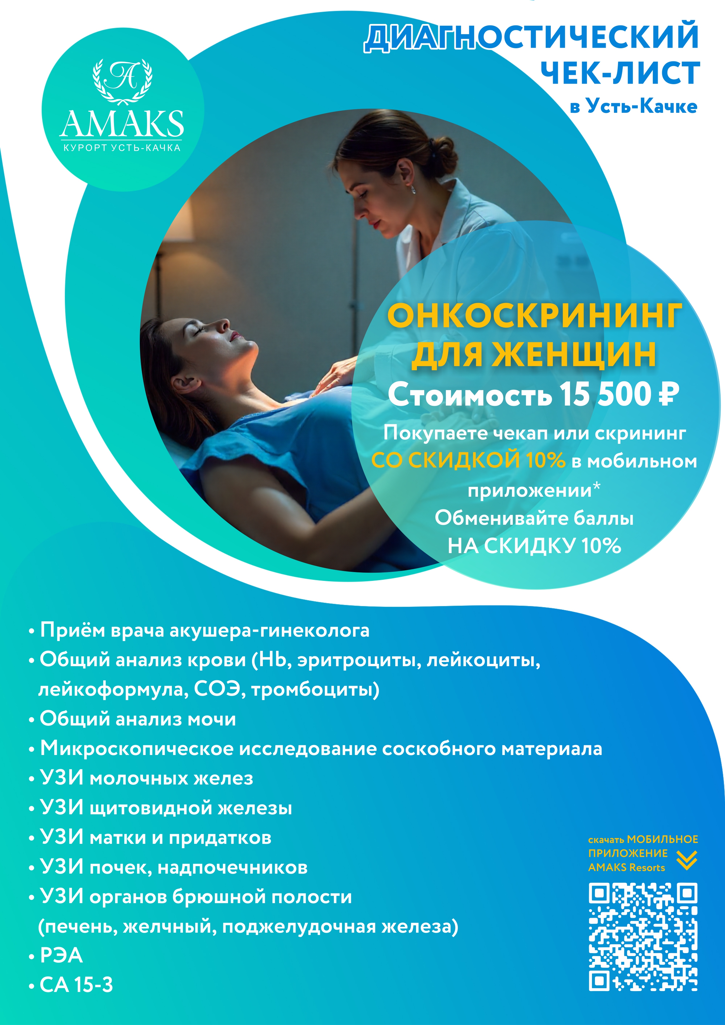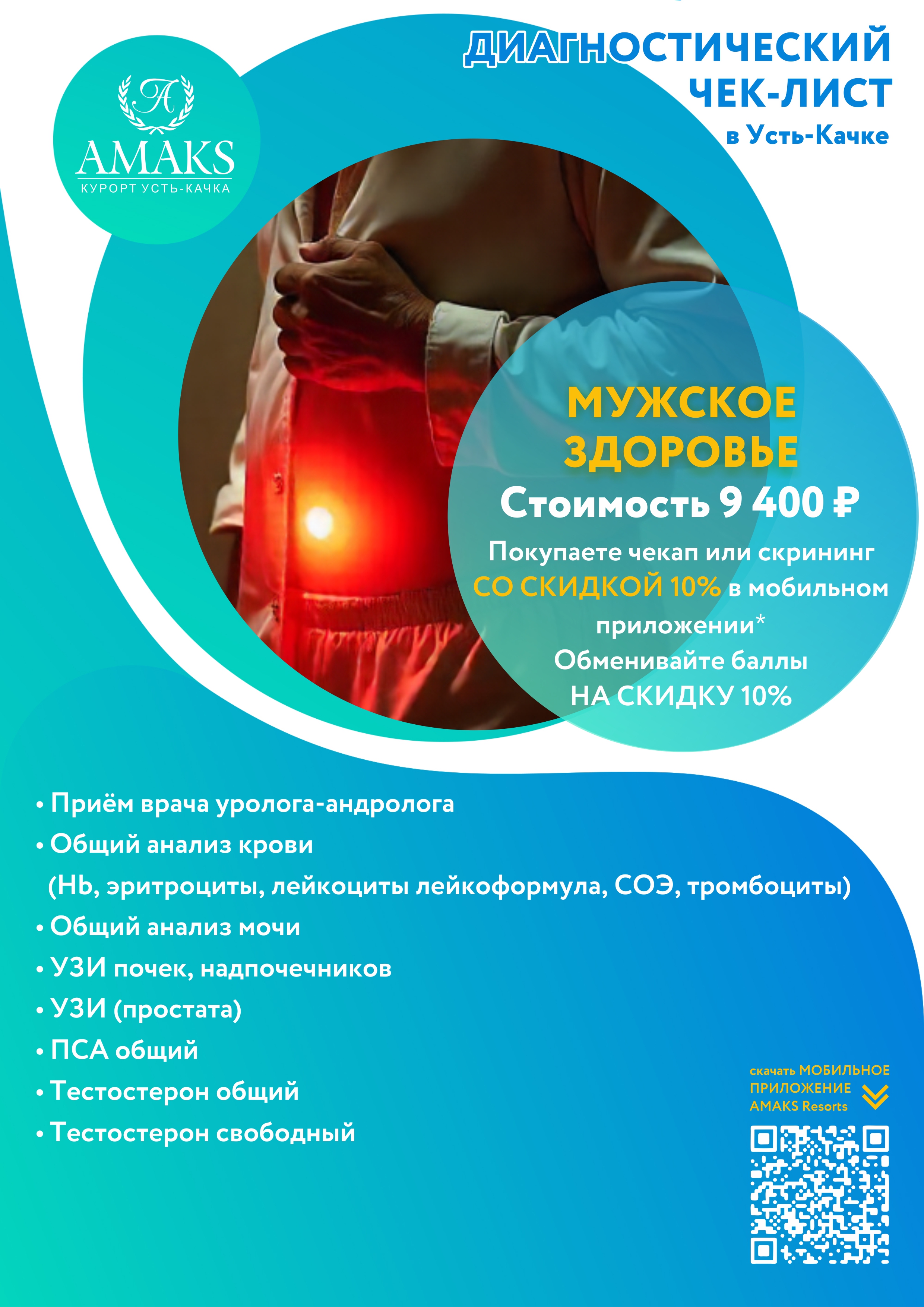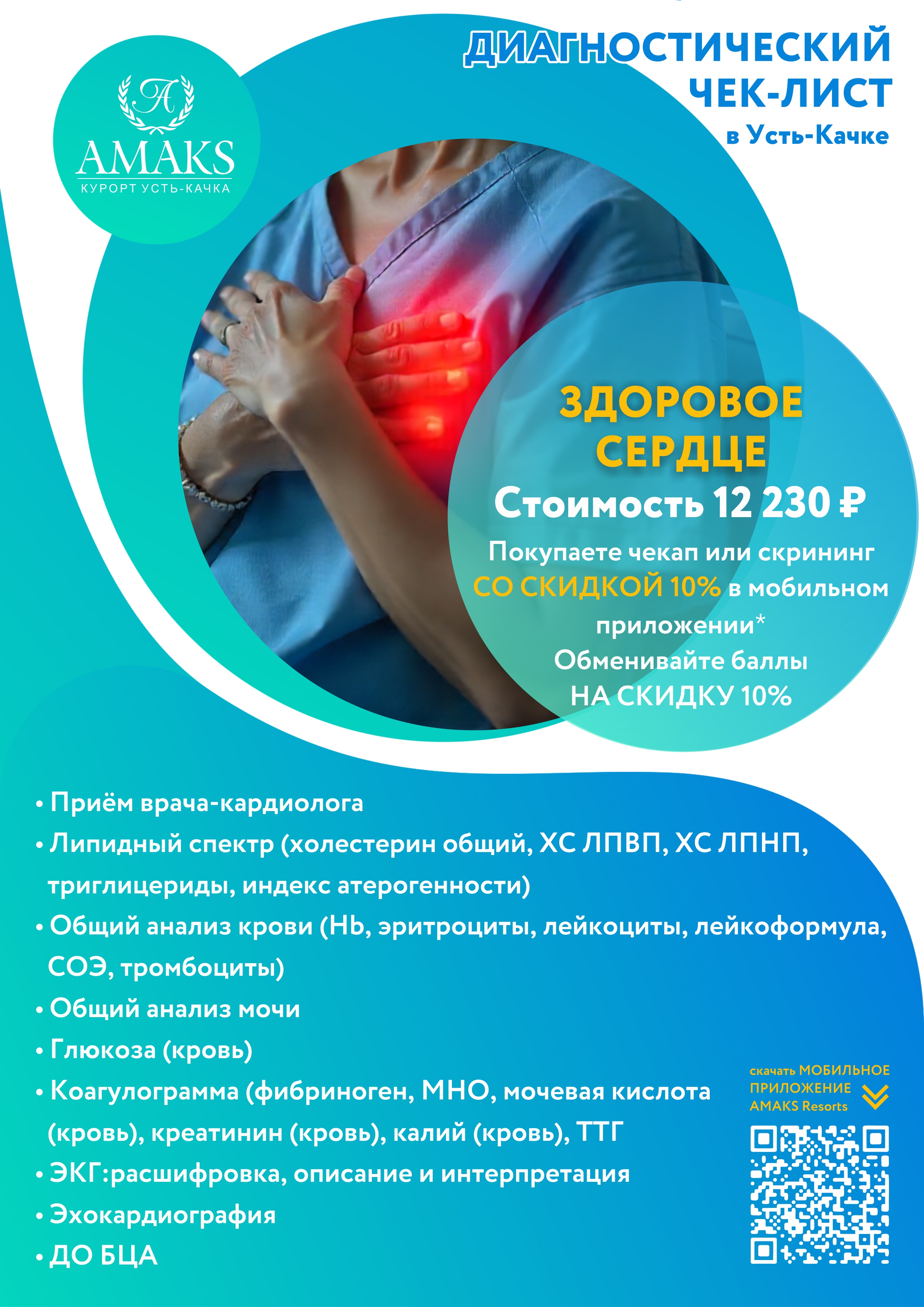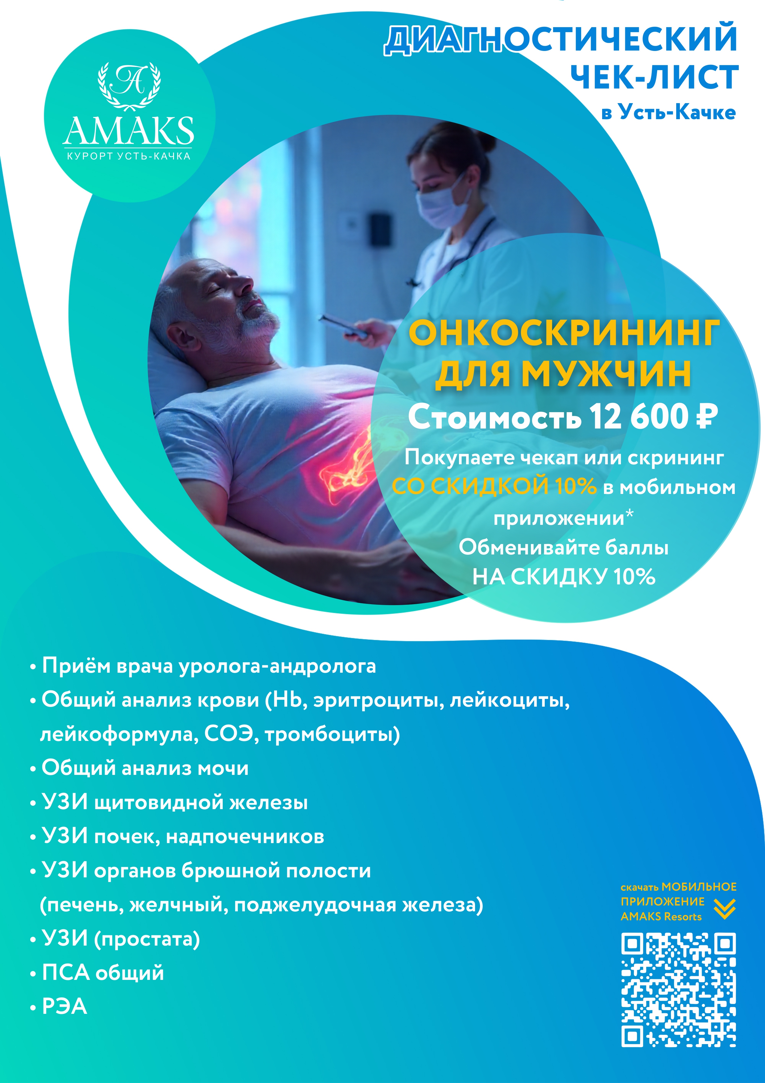 Не надо стоять в очередях, подстраивать рабочий график и отпрашиваться на прием к врачу, можно приехать в AMAKS Курорт Усть-Качка и пройти обследование в кратчайшие сроки.